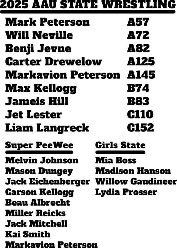 2025 AAU STATE WRESTLING text only 1 color all locations